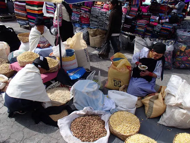 The Otavaleño Indians coming down from their small villages in the surrounding mountains to sell their agricultural products and weavings for the life. After a morning exploring and photographing as well and shopping time, we hike one hills above the town of Otavalo and San Pablo lake the most big like in Ecuador and very nice view around us, after one half hour we stop for our lunch on of one the typical restaurant.